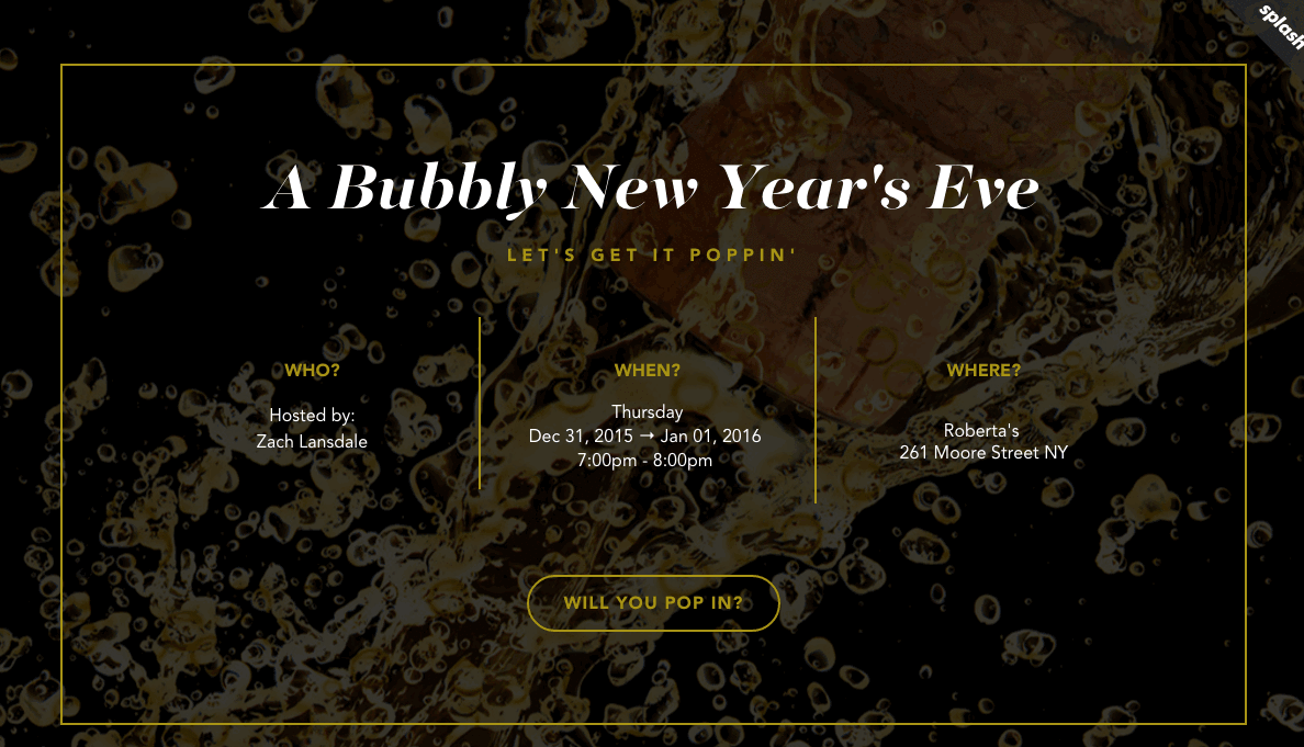 In the past month alone, the design team here at Splash has launched two amazing New Year’s themes that are sure to get your invitees to raise their glasses way before they even RSVP.