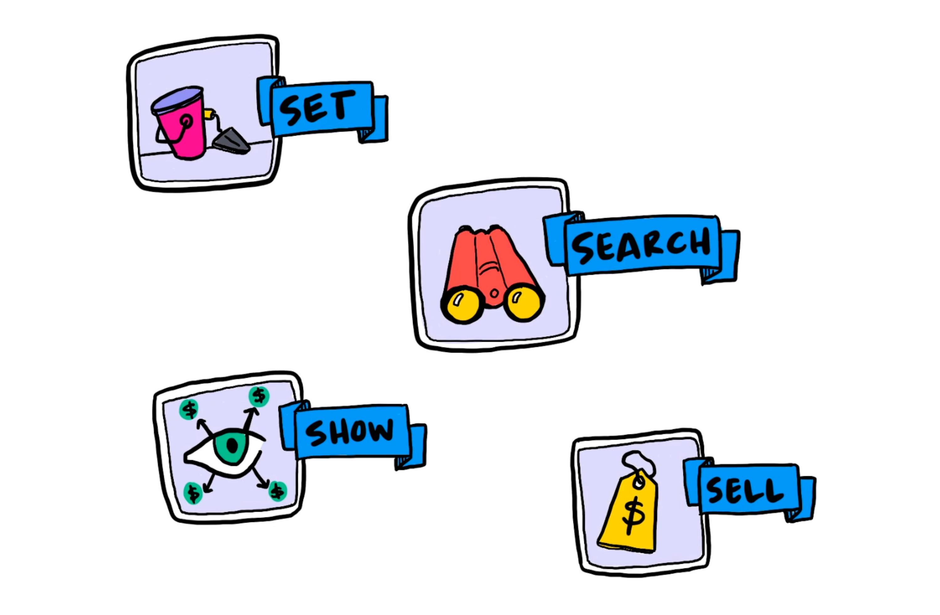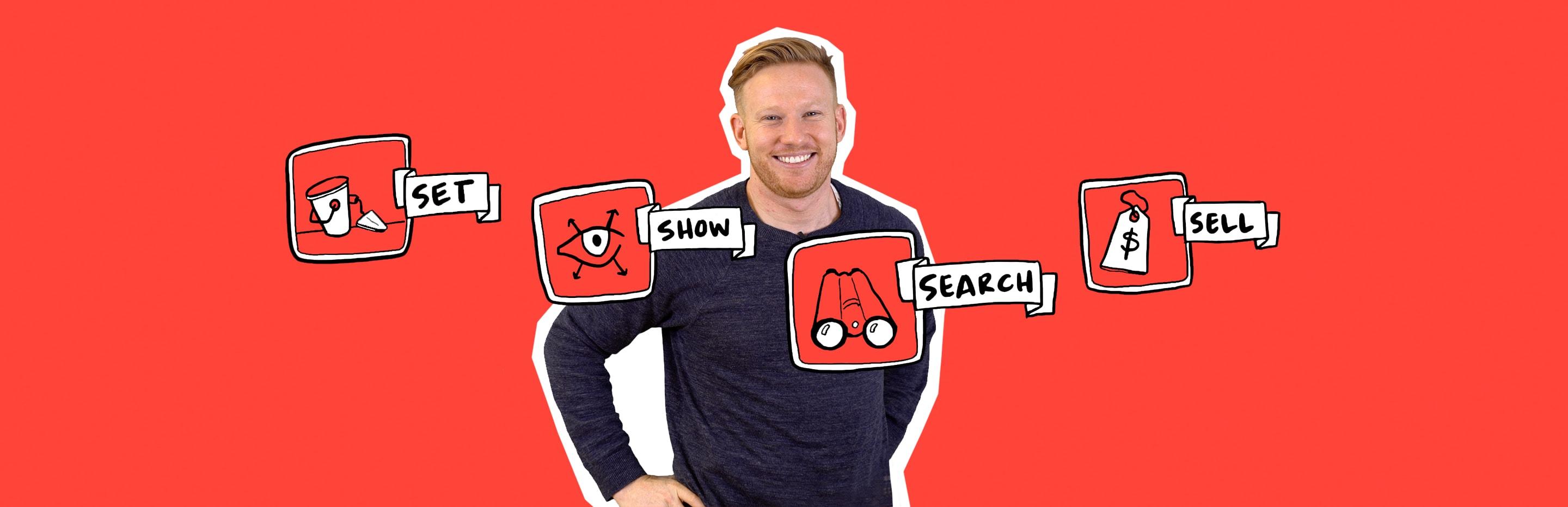 She breaks her process down into four different stages, and they're pretty easy to remember because they all start with "S." They are Set, Search, Show, and Sell. So, let's dive through each of those different stages now. And I think you're gonna agree, it's a pretty thoughtful way to fill out your speaking section.