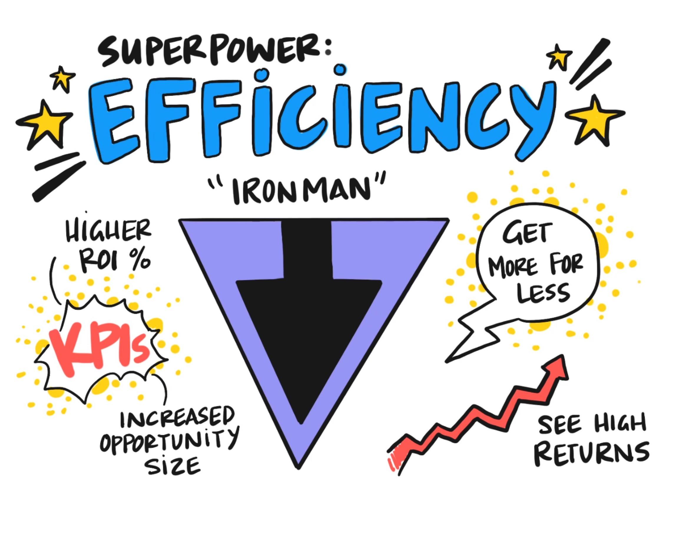 The second super power is kind of the counter to the Hulk, and let's kind of talk about like Iron Man because it's the smarter version. This is the super power of efficiency.