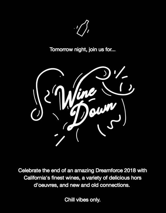 Here's any example of a reminder email we sent the day before a happy hour event: