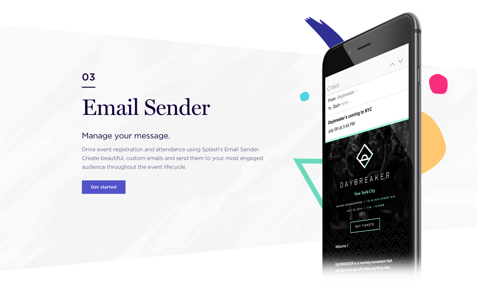 An effective event email marketing plan follows a lifecycle: The save the date, the invitation, the reminder email(s), and finally, the follow-up email. We'll teach you the basics of how to use Splash's Email Sender to design and schedule each email, and target your guest list accordingly. Like sending a "Thanks for coming!" email to guests who showed up and a "Sorry we missed you!" to the no-shows.