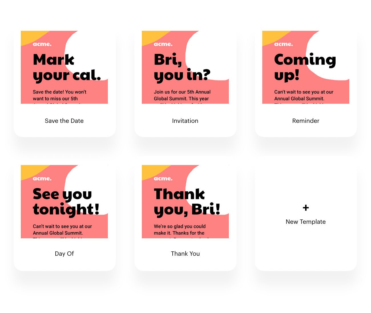 With invitation automation, you can automate completely custom and personalized event invites, reminders, updates, follow-ups and more.
