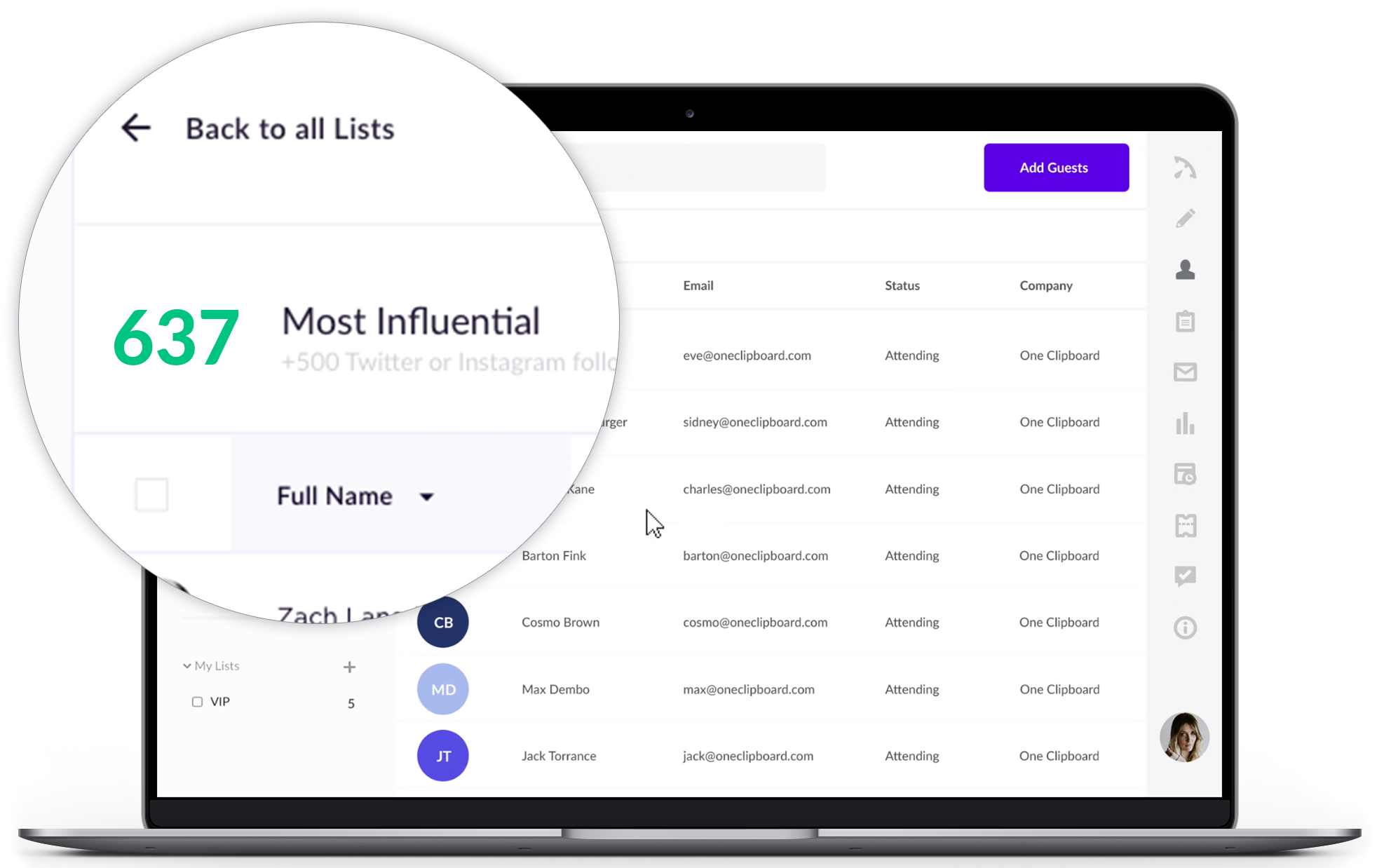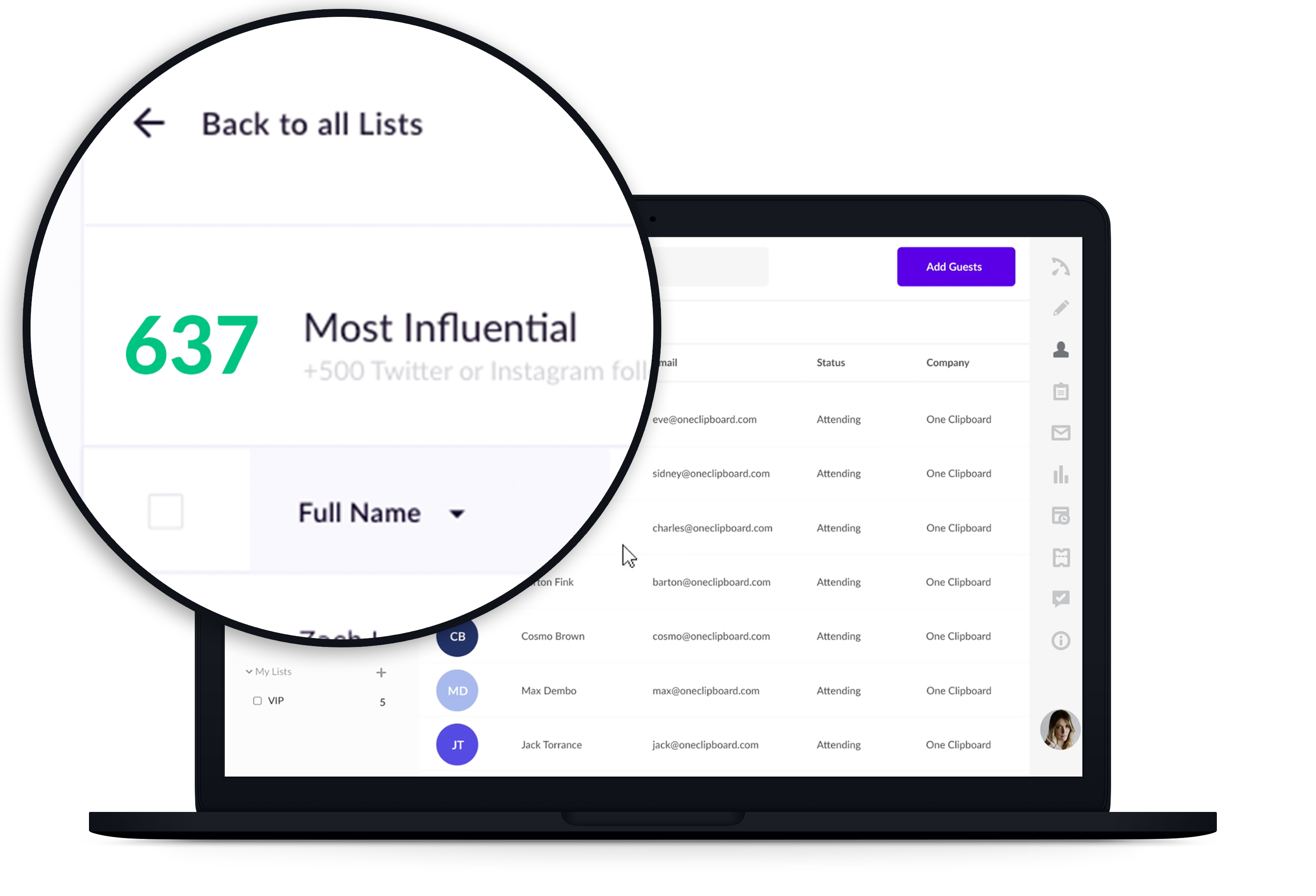 Splash’s Experiential CRM enables you to identify and segment your most valuable audiences and community members. Track, filter and sort by social influence, engagement, location and much more.